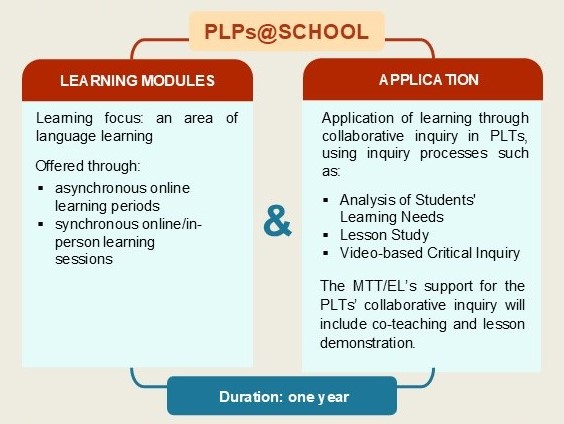 As KP and TLs of the EL department of a school, you will co-decide and co-select the shared learning focus for your department from ELIS’s flagship PLPs@School. PLPs@School are designed to enable all in your EL department to build the knowledge bases to address the diverse needs of learners in EL classrooms. You will co-lead your department in applying the learning and inquiring into classroom application.